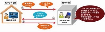 実証実験では、北本団地自治会の協力の下、高齢者宅にAQUOSを設置し、電源のON/OFF操作やチャンネル操作の情報をインターネット経由で北本市や自治会が管理するPCに送信し、これらの情報と毎日のテレビ操作の時間帯などを比較することで、高齢者の暮らしを見守る。