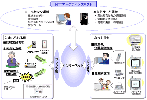 株式会社エヌ・ティ・ティマーケティングアクトは、センサーによる高齢者みまもりサービス「ACTOSみまもりeye」を2004年8月17日からサービス開始する。