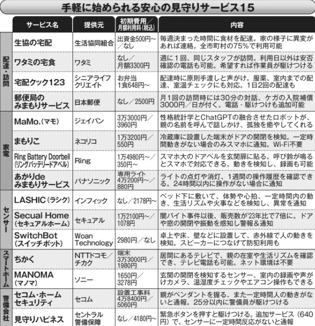 いま、高齢者の安否確認ができる「見守りサービス」を使う人が増えている。親が元気なうちに、宅配業者や警備会社、家電やセンサーなど、どんなサービスがあるのかをチェックしておこう。